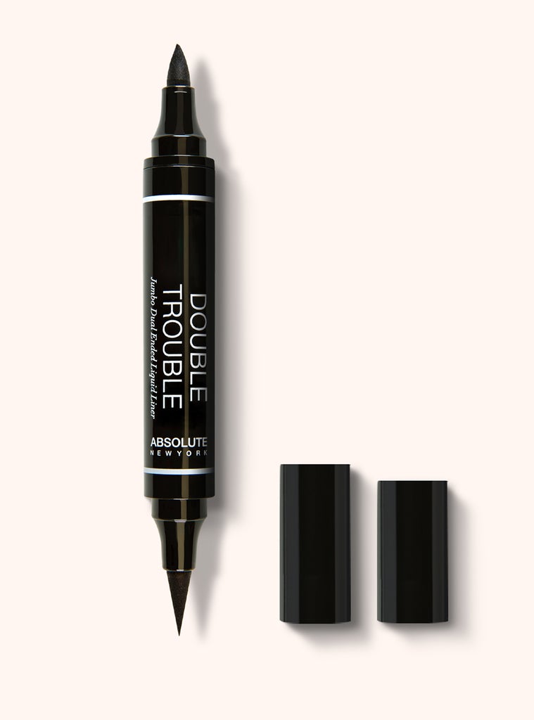 A dual-ended waterproof liquid eyeliner with jumbo tips - a short and stubby tip on one end and a thick, long tapered tip on the other. Achieve dramatic lines and edges for double definition.