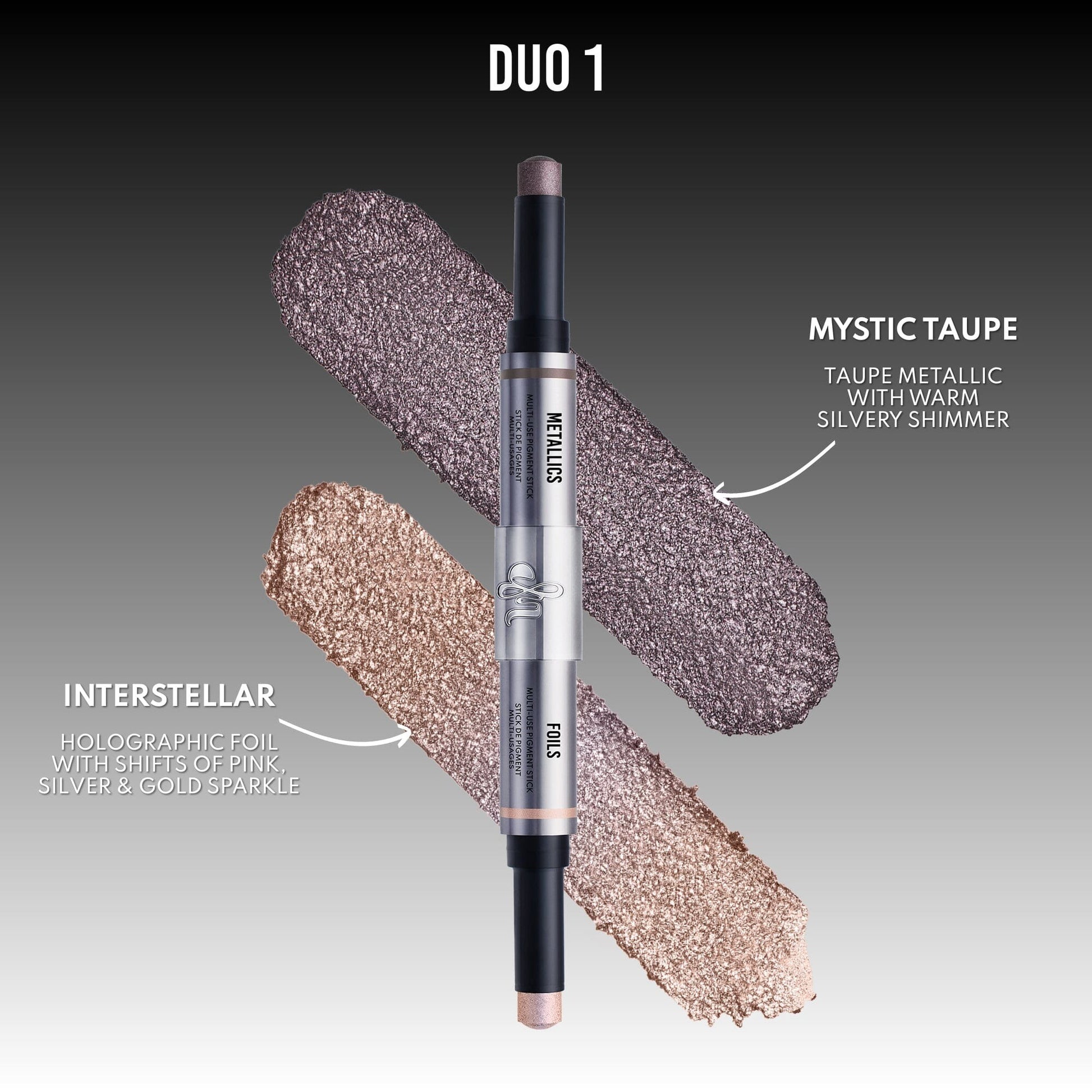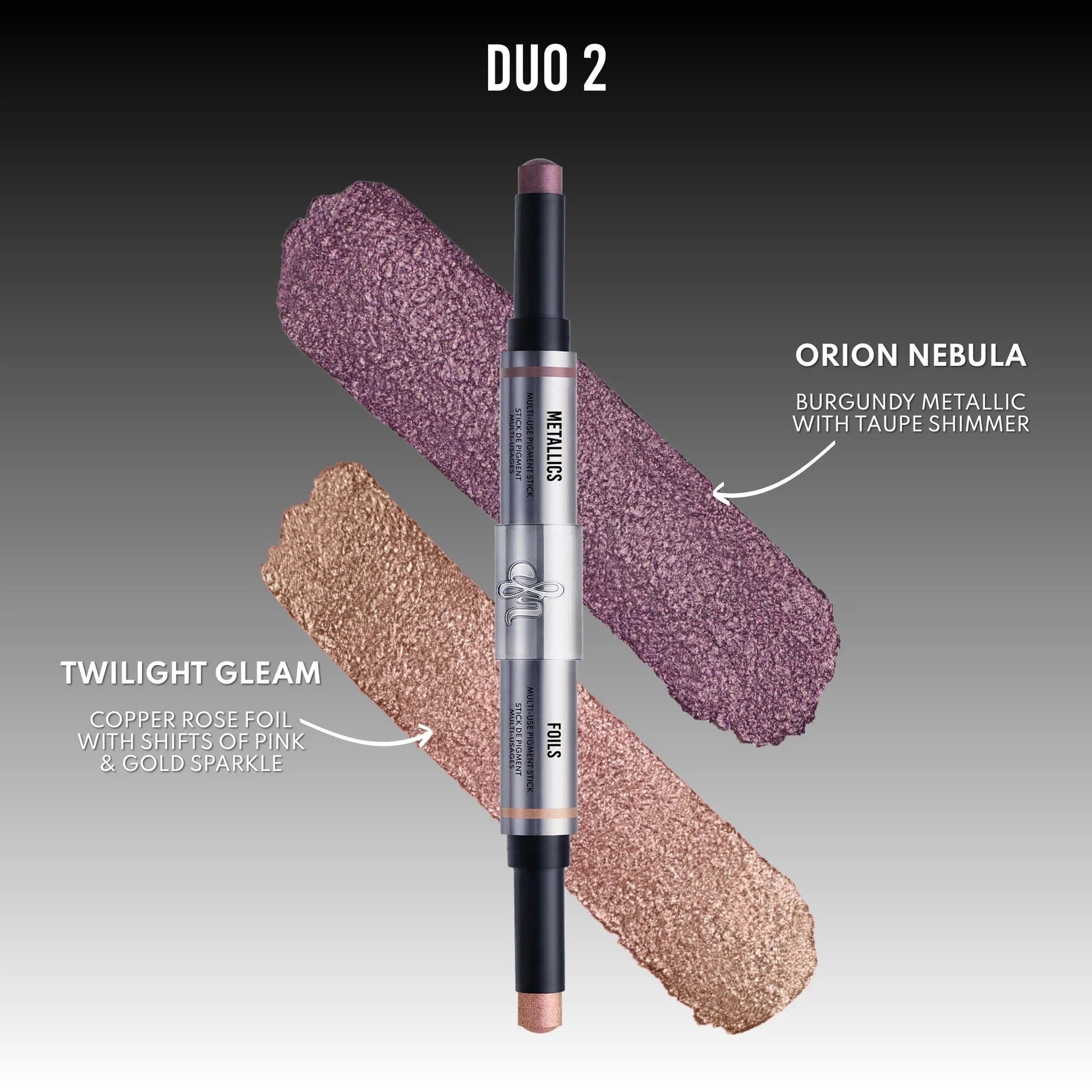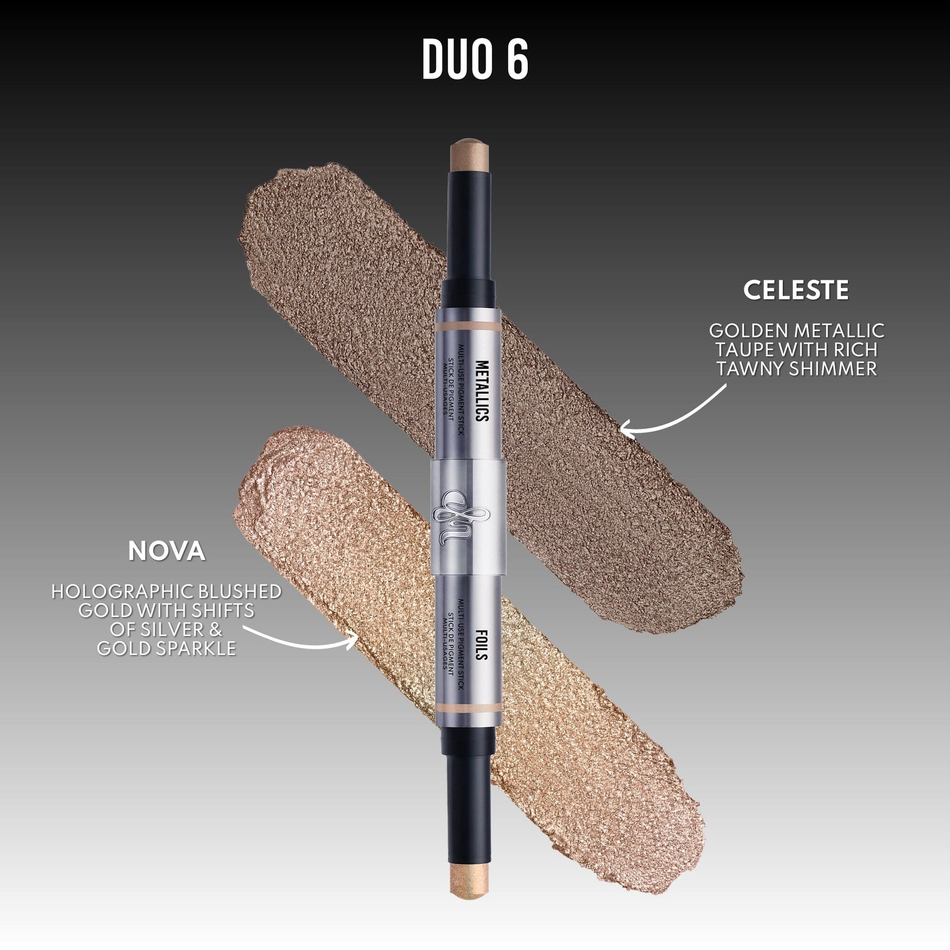 Gently tap or swipe onto eyes, cheeks, or lips. Swipe on Metallics. Tap on Foils. Layer together or wear solo.