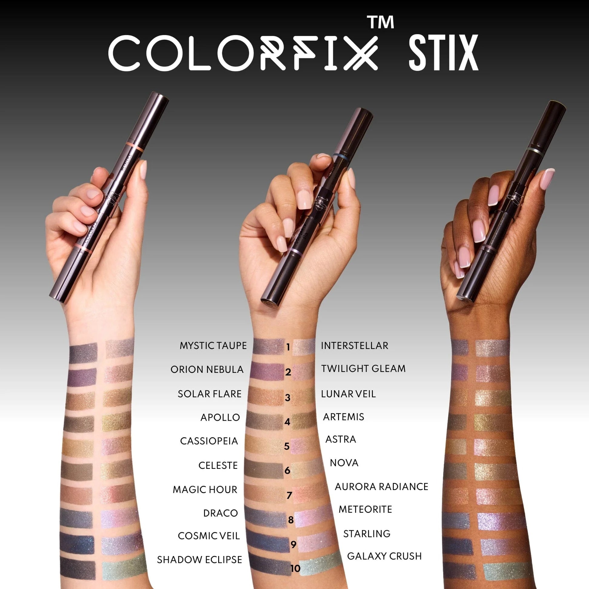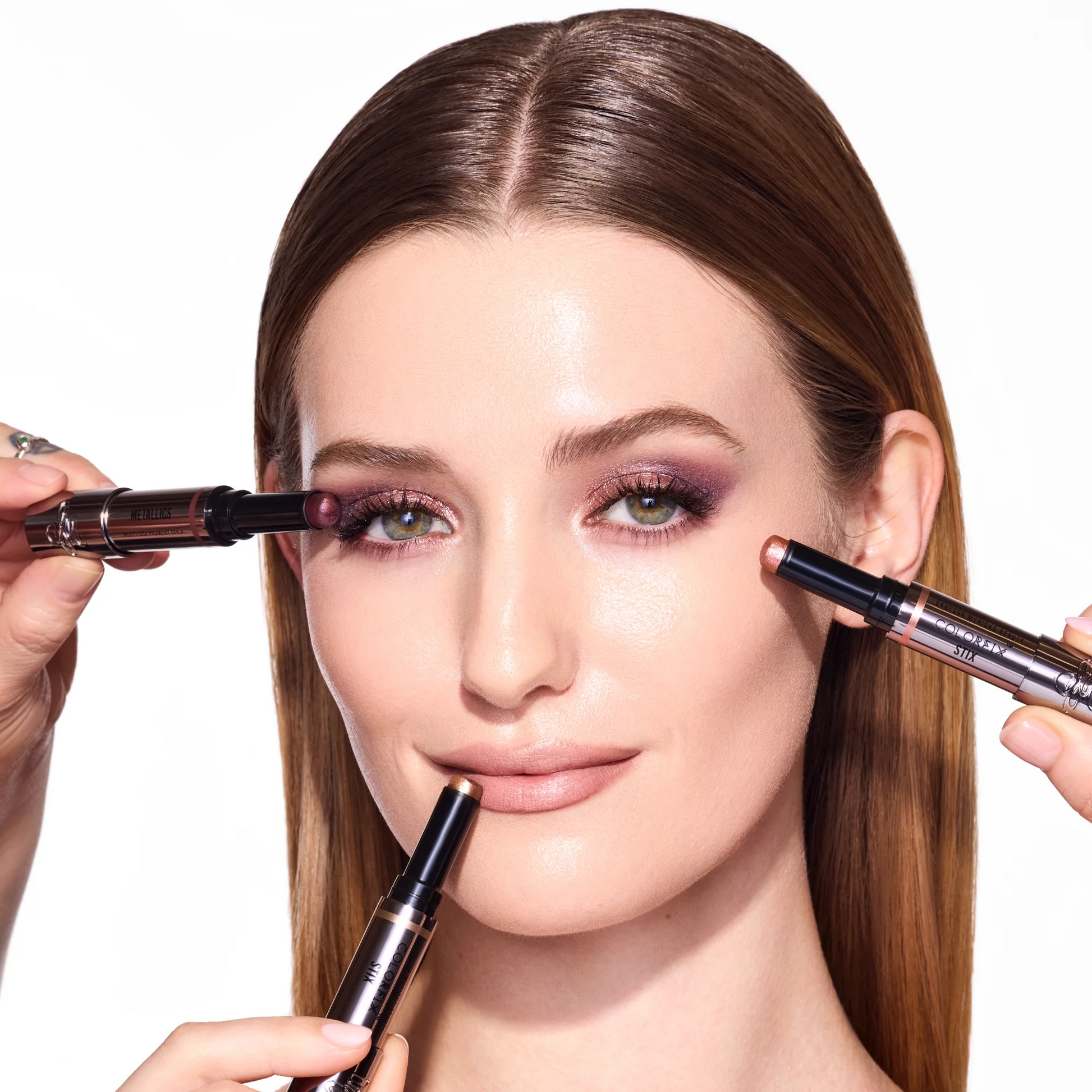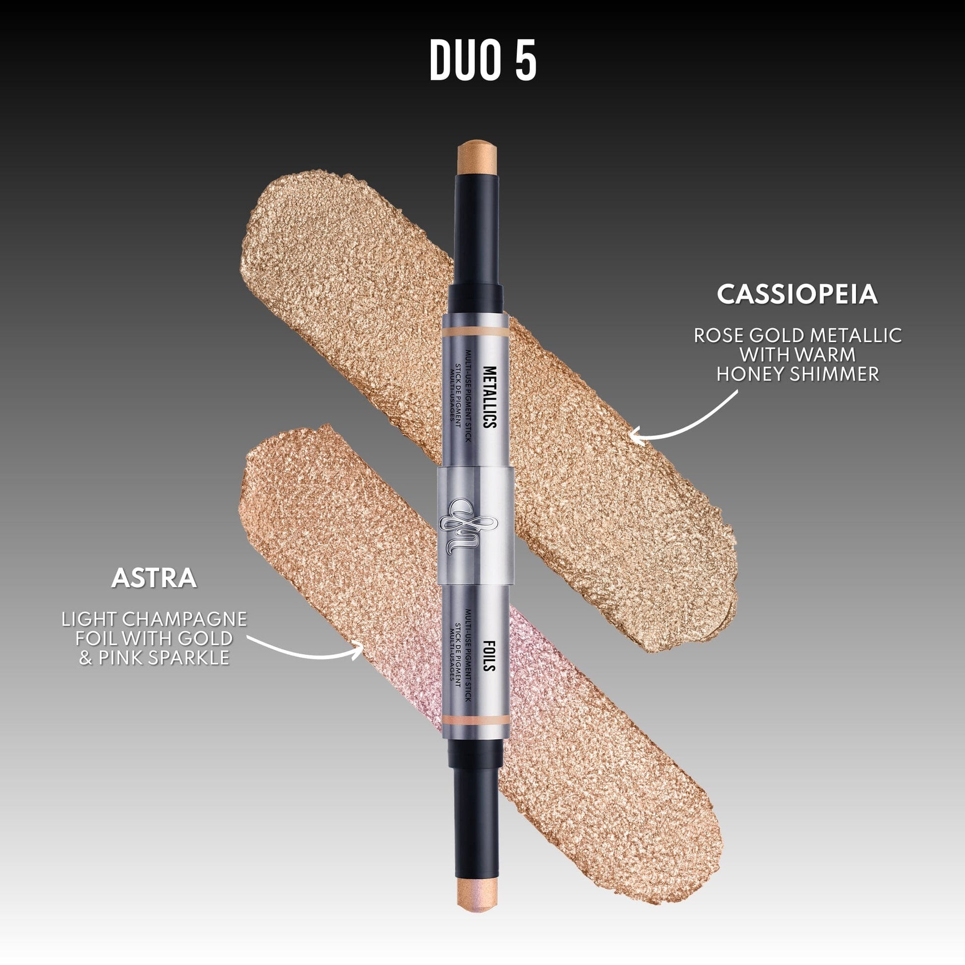 Gently tap or swipe onto eyes, cheeks, or lips. Swipe on Metallics. Tap on Foils. Layer together or wear solo.
