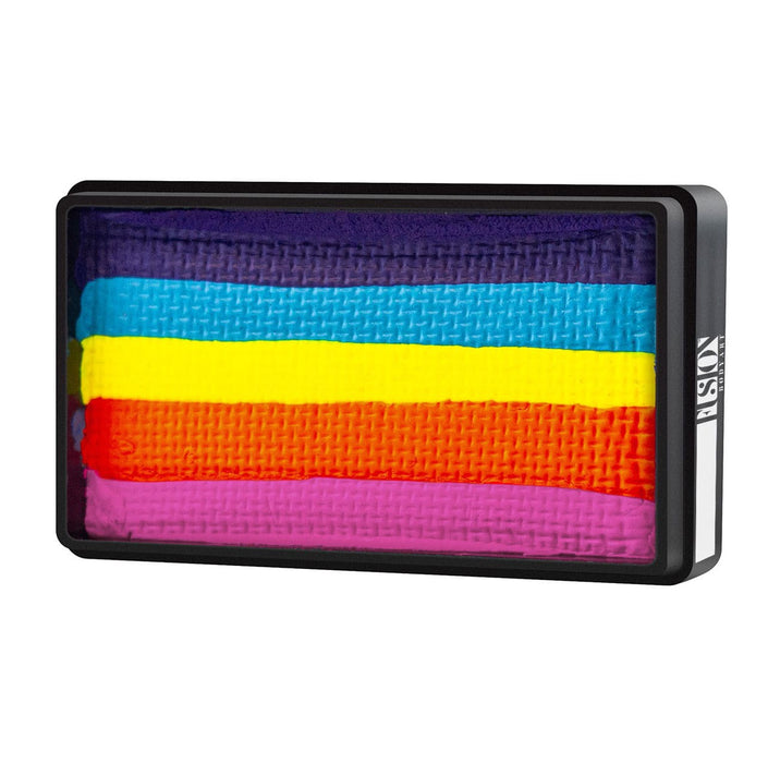 Fusion Body Art Face Paint is fast and easy to apply with a wet paint brush or sponge. Fusion Face Paints can be easily removed with soap and water loaded onto a soft cloth or sponge. Fusion Body Art Face paint colours contain only high-quality FDA and EU compliant skin safe pigments and ingredients that are gentle on the skin. Each colour has been carefully developed to give you the brightest and most opaque colors for your makeup designs. Fusion Body Art Face Paints dry quickly, and once dry have a smudge resistant finish. You can layer colours on top of each other once the base colour is dry, and you can blend Fusion Body Art Face Paints while they are still wet to make endless beautiful shades.