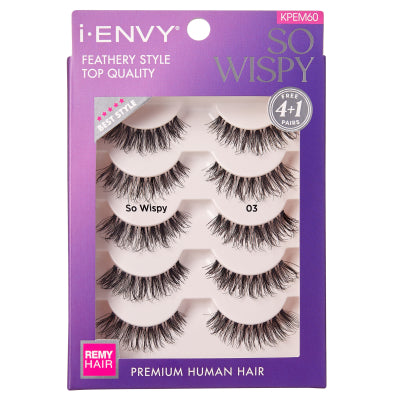Multi pack contains five pairs of So Wispy 03. Everyday wear lashes designed to work with what you’re working with. The wispy lashes graduate from short to long, and each feature a clear band (invisible to the eye) for that nothing-but-natural look.