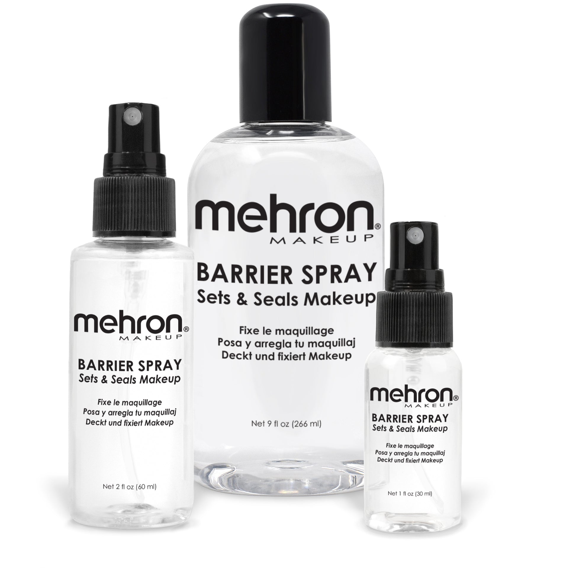 Mehron’s Barrier Spray™ is a clear liquid spray that sets makeup designs and helps protect sensitive skin from makeup, latex and other adhesives. Great for extending the wear of makeup applications for Modeling, TV, Stage, Clowning, Face Painting, Halloween, Special Effects and Photography!